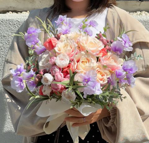 後日、ご希望でブーケ以外に組み直す事のできます、アーティフィシャルフラワーならではのメリットは沢山ありますので何なりとご相談に応じます。